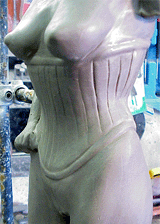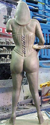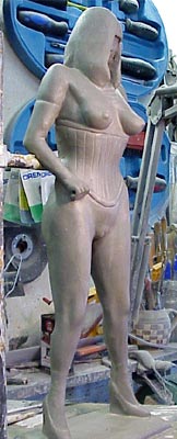 From the previous stage you will see I have started to slim the piece down, with greater detail added to her basque, and head.
